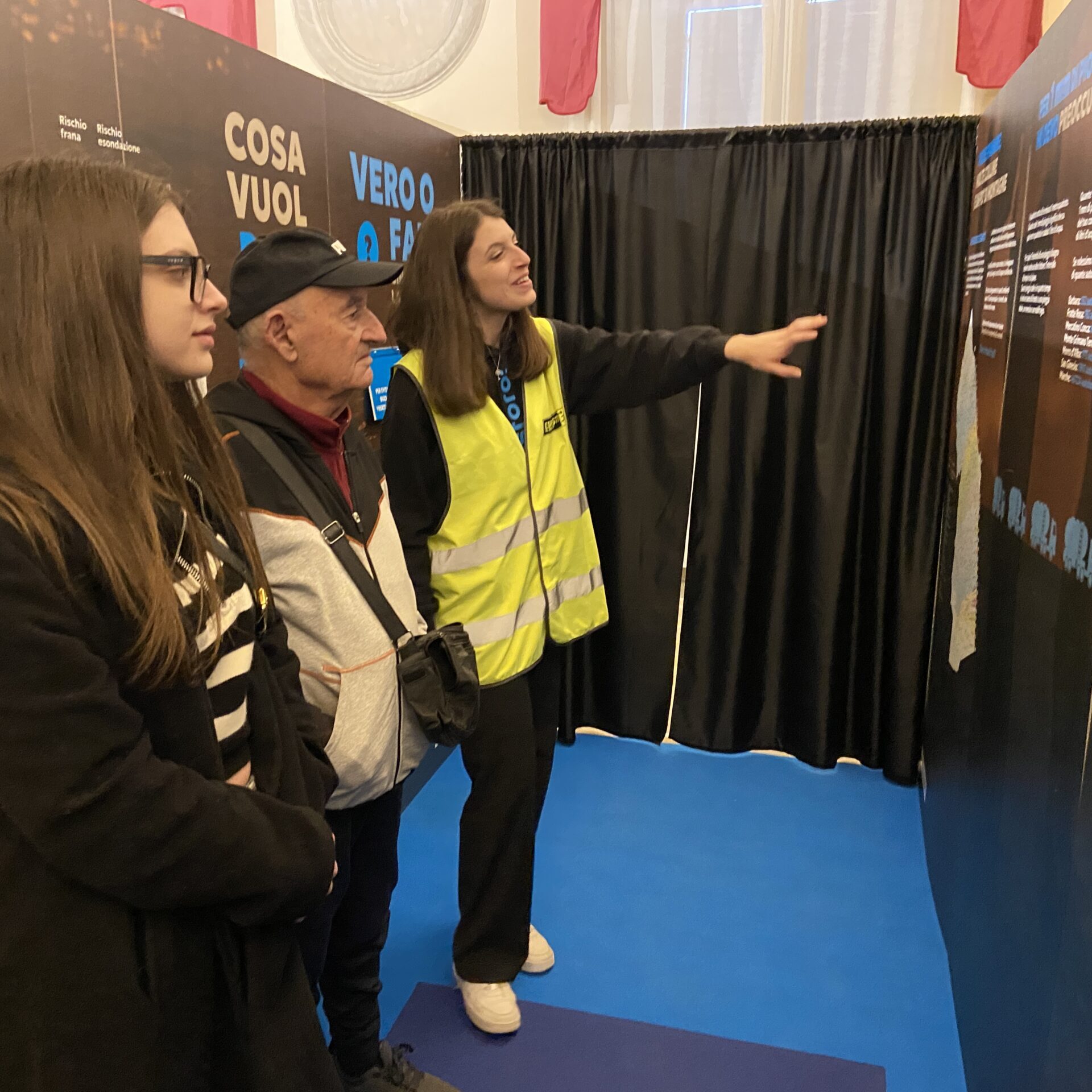Per chi ha scelto di mettersi in gioco il percorso è proseguito con workshop operativi in cui cimentarsi nello sviluppo di una vera e propria mostra sulla comunicazione del rischio utilizzando anche nuove tecnologie quali i Visori 3D. La mostra prevede 6 tappe dalla primavera 2024 in 6 comuni delle Marche: Barbara, San Ginesio, Fratte Rosa, Morro D’Alba, Mercatino Conca, Montegrimano Terme.